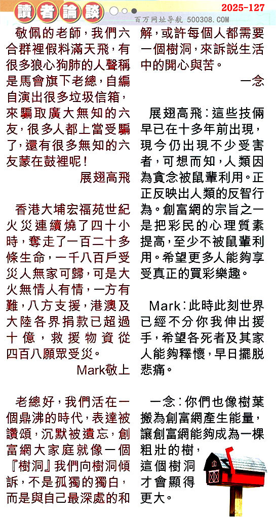 127期:彩民推荐〖貼信讀者論壇〗〖曾道人信箱〗